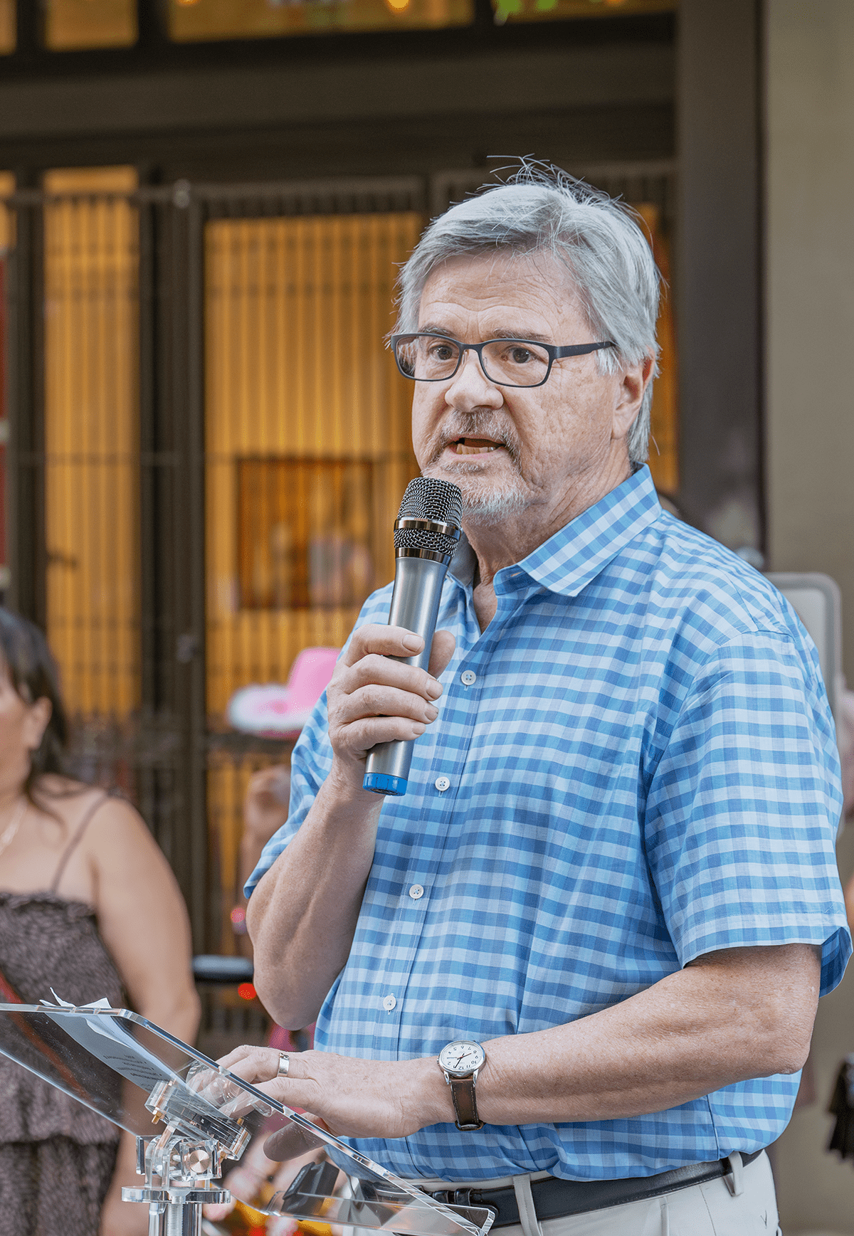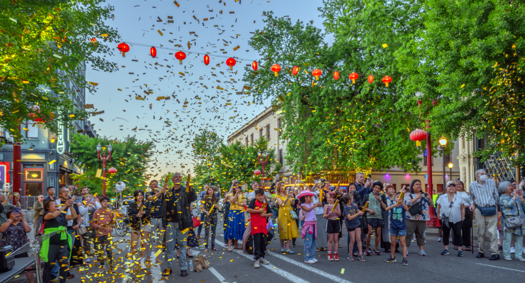 老城社區協會主席婕西 伯克(Jessie Burke)、董事會成員、業主湯姆 克拉克(Tom Clark),華埠歷史博物館董事會成員李素娟(Gloria Lee)、日裔美國人康妮 松岡(Connie Matsuoka),以及贊助商等出席儀式並先後講話。