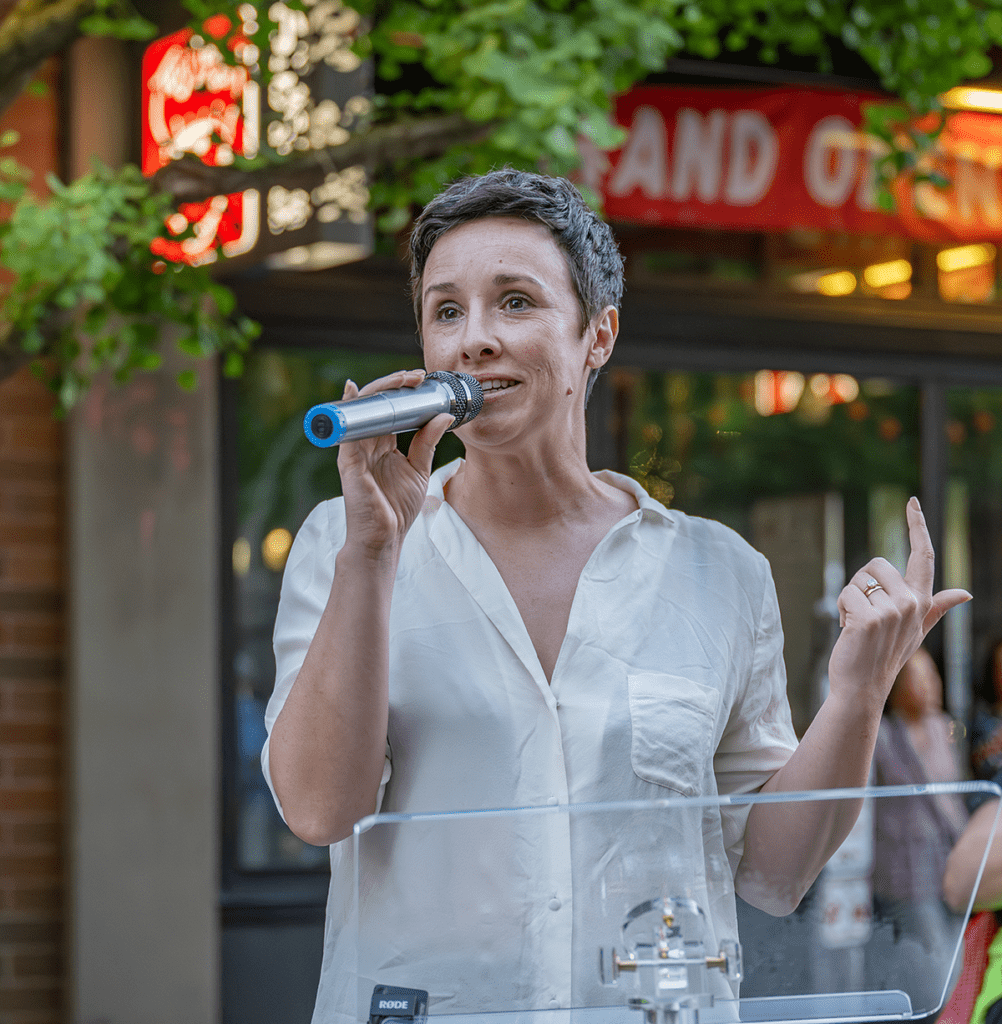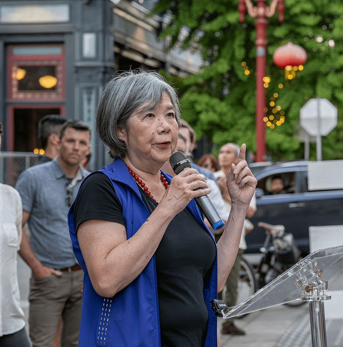 協會主席婕西 伯克在致辭時,感謝各界的朋友參加慶祝老城大紅燈籠點亮儀式。表示,老城街區以我們偉大的華埠歷史博物館和蘭蘇園為基礎,燈籠象徵著喜慶與堅韌,讓老城街區的傳統文化遺產色彩更加鮮明。
