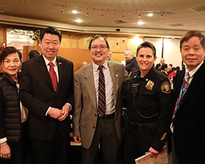 (本報記者彭振生攝影報導)2月3日晚,中華會館春宴假座黃上皇酒家熱烈舉行。駐西雅圖臺北經濟文化處范國樞處長伉儷及陳冠廷副領事、新任文教中心主任吳曉竹女士、波特蘭警察副局長Rayn Lee、Tashua Hager警長、社會賢達及各堂所代表等,共二百多人出席了當晚的宴會。