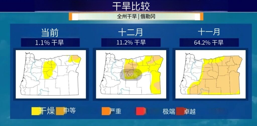 俄勒岡乾旱大幅改善 全面恢復仍需更多降水