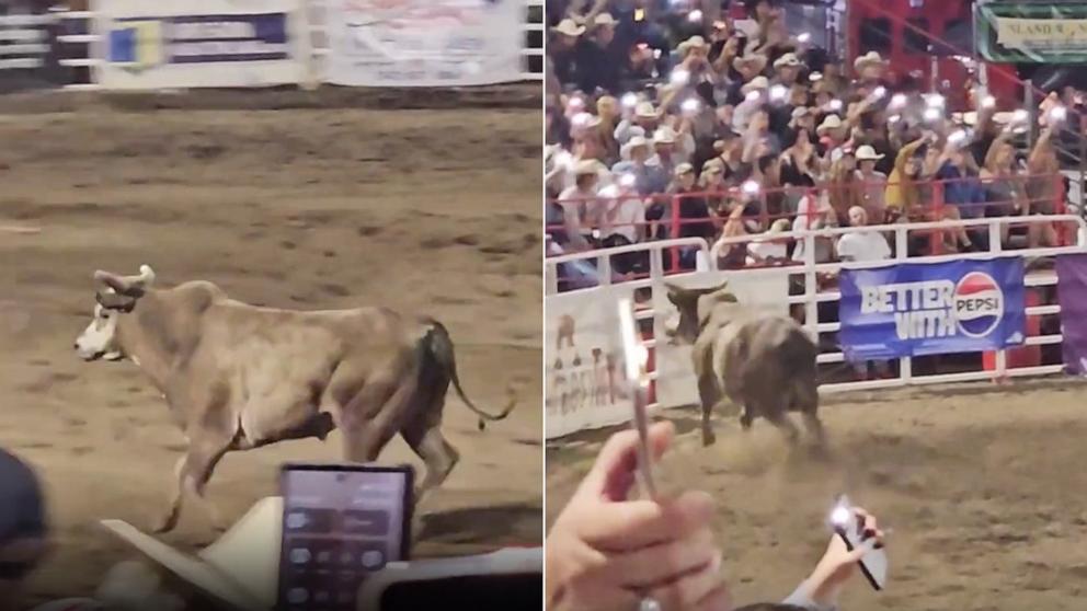 根據現場視頻顯示,競技場現場觀眾滿座,一頭牛在牛仔的追趕下載競技場內四處亂跑,隨後竟跳過圍欄逃出競技場。另一段視頻顯示,這頭牛在小吃區內橫衝直撞,撞倒一個垃圾桶,讓人群四散。期間,一人被牛挑起,在空中翻滾,並被牛角撞擊後落地。