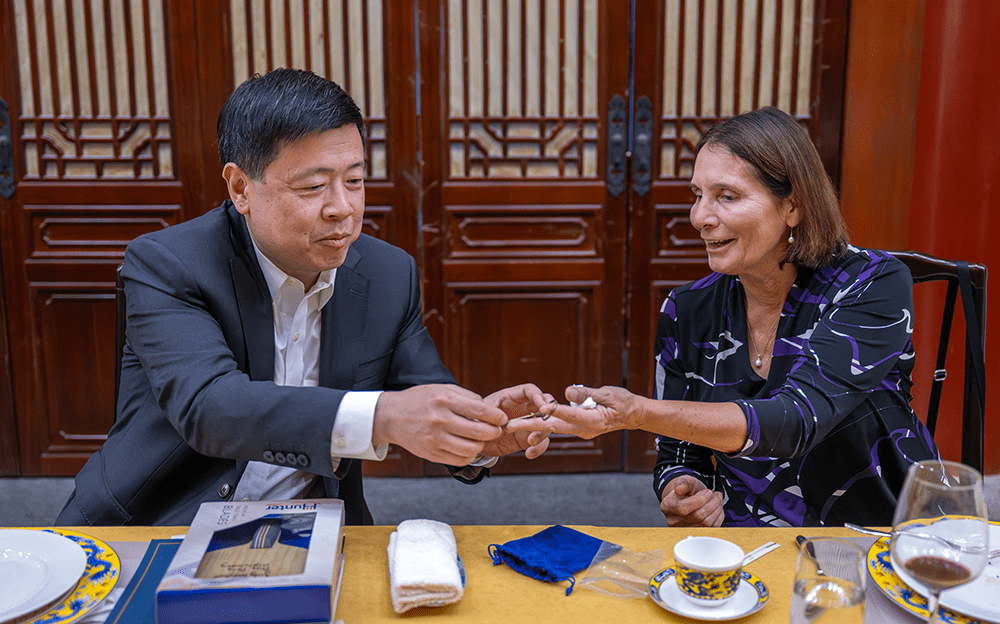 代表團成員朱迪·霍爾弗羅斯特,這位曾參與1971年歷史性訪華、為打破美中關係堅冰做出貢獻的美國乒乓球代表隊前運動員,此次是她第九次來到中國。回憶起當年作為15歲少女,在日本參賽時突然接到訪華邀請的情景,她依然難掩激動:「當時我很驚訝也很興奮,完全沒想到,這顆小小的白球,會成為我一生聯結中國的紐帶。」