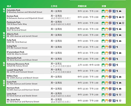 今年的免費午餐地點分別在16個公園和10個公寓大樓內舉行,詳情請查閱網址:https://www.portlandoregon.gov/parks/69873