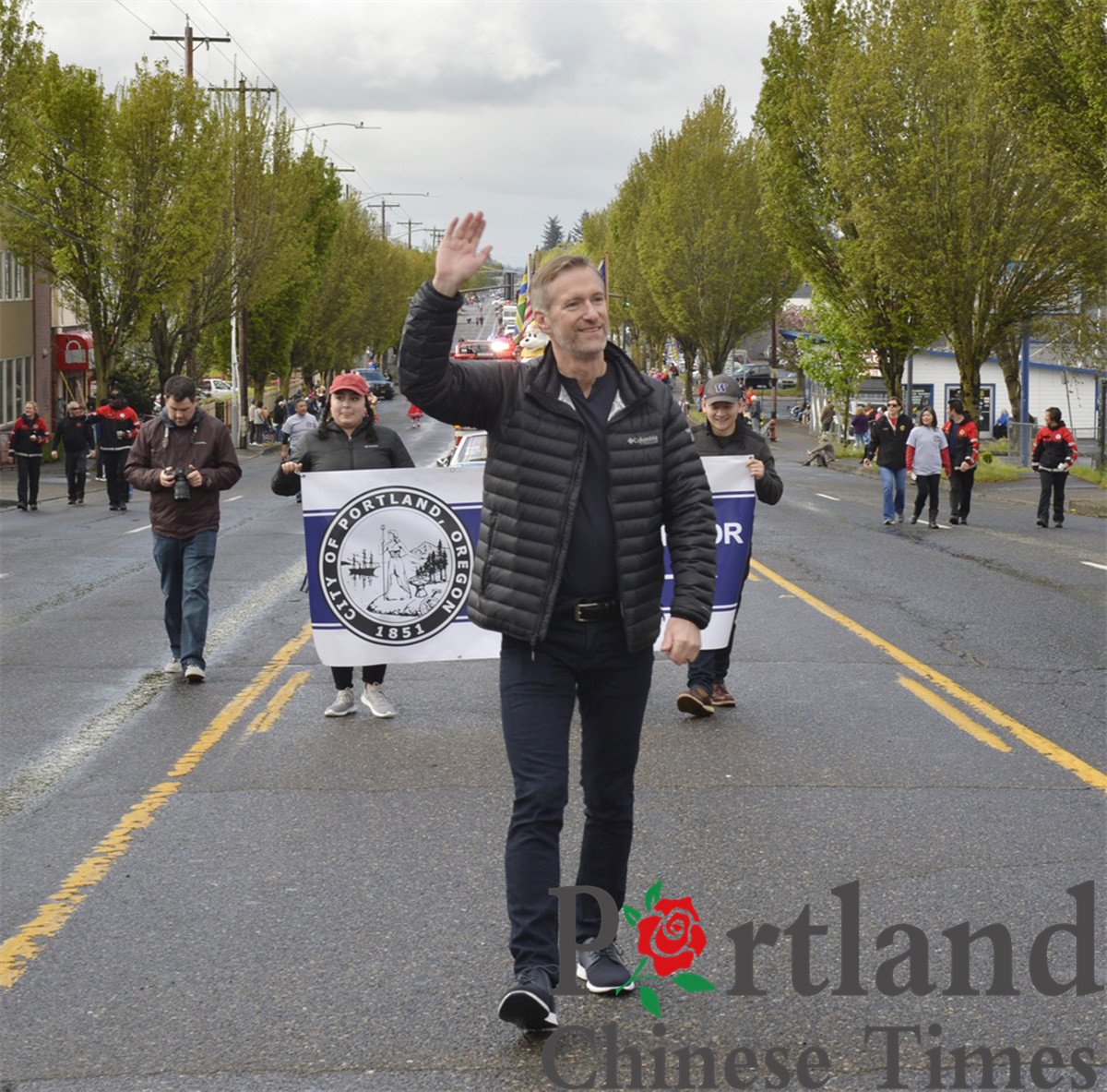 波特蘭市長泰德 惠勒(Ted Wheeler),市議員阿曼達(Amanda Fritz),2019玫瑰節負責人等官員等行進在巡遊隊中,並不斷向沿途民眾揮手致意。