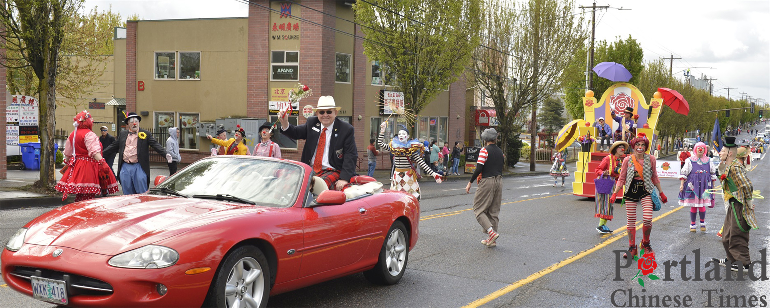 (本報記者俄廣才攝影報導)波特蘭東南區第十二屆82玫瑰大道巡遊活動,於上周六,4月27日上午舉行,今年的活動是由波特蘭橋樑節日組織主辦。