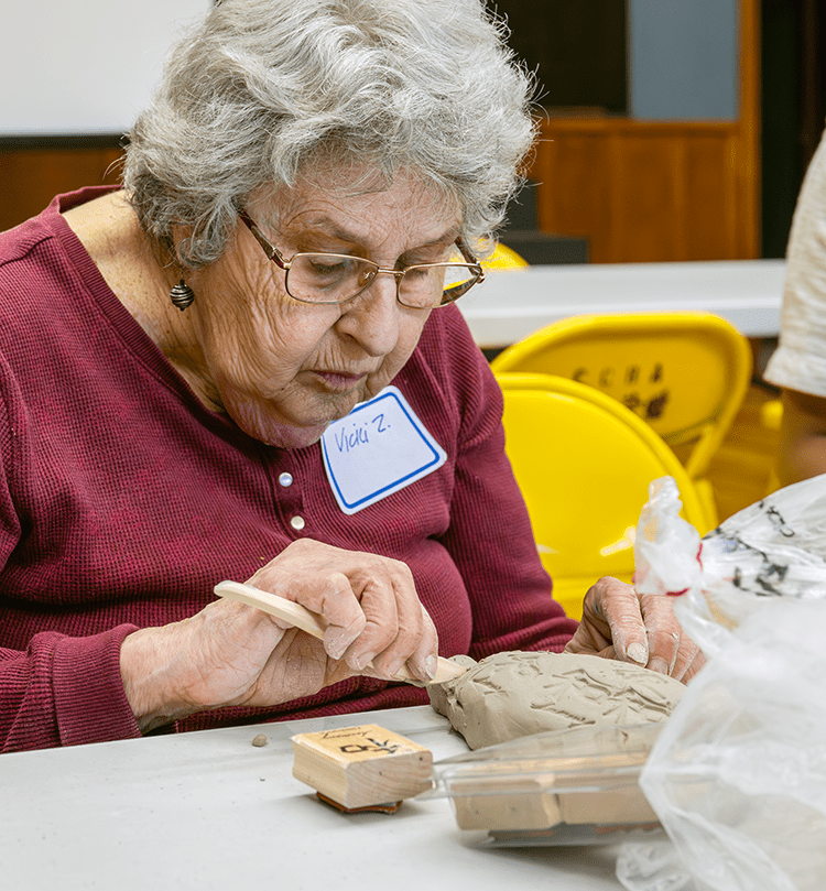 數十位民眾圍坐在桌前,其中有滿頭白髮的長者,也有眼神專註的青年,他們凝視著手中樸素的黏土,神情肅穆而投入。