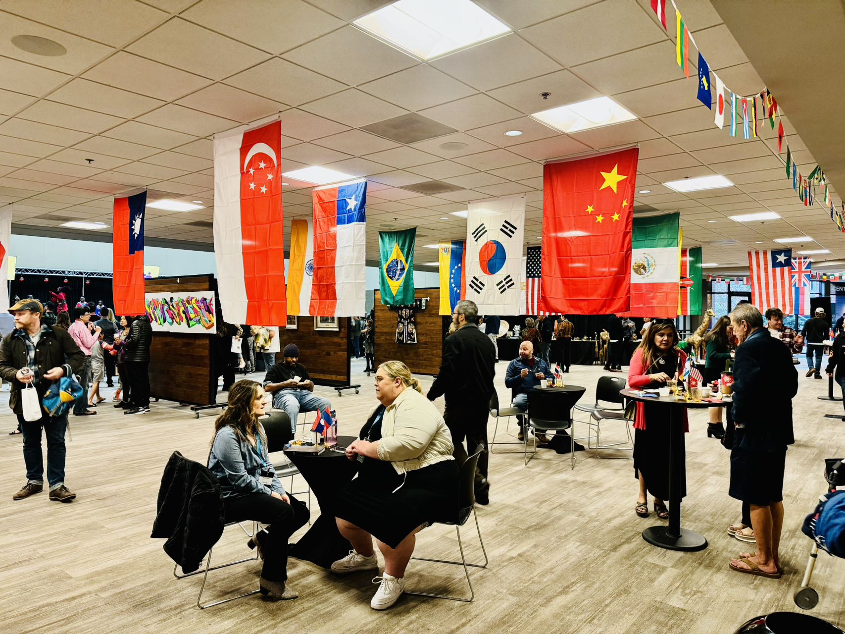 在活動現場,主辦方作了精心準備。寬敞的大廳中央搭設了舞台和音響設備,場內區域以不同功能作了劃分。主場上分別以各族裔所在地區區域為序排列活動位置;兩側分別設為各族裔美食餐飲服務區;主場外廳從天花板上垂掛下17面各族裔所在國的國旗,旗下分列的展板和展台上,陳列著各族裔的繪畫、刺繡、服飾、陶瓷、工藝等藝術品。此外,還設置了現場書畫、手工製作等互動台。