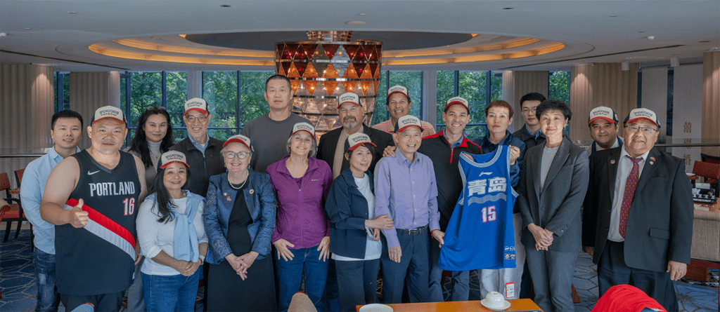 (本報訊)10月21日,由俄勒岡州參議長羅布·瓦格納率領的州議會代表團一行,與中國籃球新星楊瀚森的父母,中國籃球協會秘書長徐嵐及中國人民友好協會代表共進午餐,以籃球為紐帶搭建起中美民間友好的新橋梁。