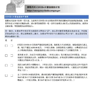 要了解更多詳請,請查閱網站:emergencychecks.oregon.gov,在網頁內點擊Chinese 即到中文網頁。