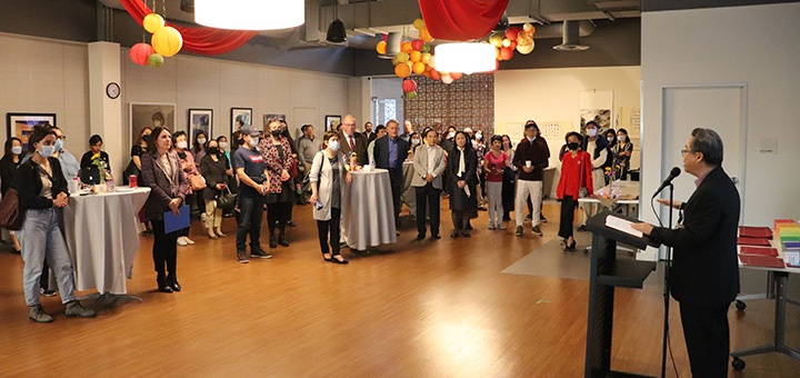 總裁梁永富在主旨發言中,對新冠肺炎大流行以來中心所作的大量工作作了回顧,列数了以防疫為重點的各項工作和服務。一是圍繞新冠肺炎開展相關服務,包括社區聯絡、疫苗接種和送餐關懷;二是發揮中心精神健康及心理諮詢優勢,有效進行心理及精神健康治療服務;三是通過線上與實體進行政府醫療保險咨詢與申請,堅持日常工作常態化;四是提供亞洲癌症支援項目,並為患者及家屬設立互助小組;五是就反亞裔仇恨,建立應急熱線支援;六是舉辦有關身心健康、生態環境和氣候變化等方面的知識講座,提升生活理念和品質;七是貫徹戒煙宣傳與預防,落實州政府推行的倡議;八是與社區藝術團體開展橫向聯繫,合作舉辦「以藝術架起社區橋梁」的展覽;九是與醫療、消防和警察等機構建立良好關係,保持互動,增強危機意識。