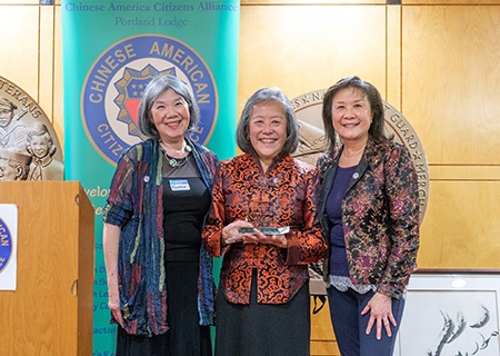 今年同源會頒發的《同源會公民獎》得主是時任砵崙華埠博物館董事之鍾梁美麗Sarah女士。Sarah是一名土生土長的波特蘭人,曾在多個組織服務過,其中包括華裔工程師協會,俄勒岡州中華會館等。多年來她擔任中華獎學金基金會的主席。在2016年,Sarah成為了砵崙華埠歷史基金會的創始會員,並積極參予砵崙華埠博物館的工作,致力讓該博物館成為老城區,波特蘭市,甚至是西北地區的一個重要景點。她表示,她的父母親都認為要回饋社會,她是承傳父母對服務社會的傳統精神。