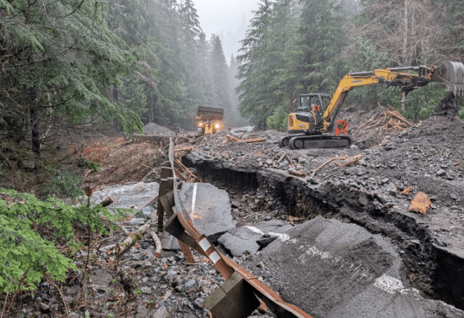 (本報綜述)去年12月一波「大氣河流」帶來的強降雨,對華盛頓州多條主要公路造成嚴重破壞。州交通官員本週向州議會表示,目前初步估算,相關道路與基礎設施的修復費用至少介於4,000萬至5,000萬美元之間,實際金額仍可能隨清查進度上修。