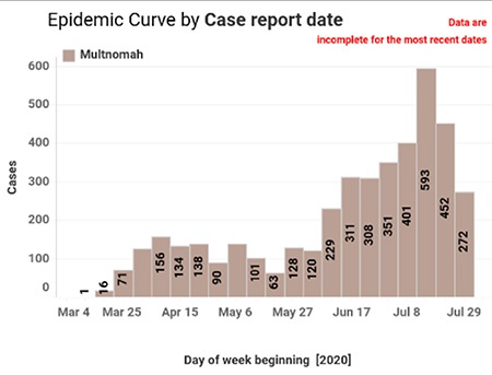 截至7月28日,麥縣的總確診人數有4,281人,死亡人數92。