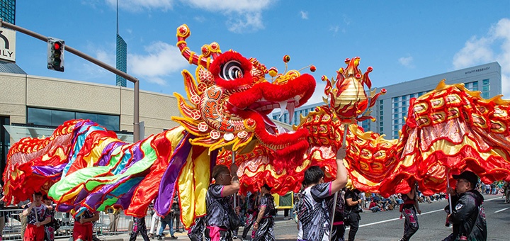 華裔社區,以及越南、烏克蘭、墨西哥裔等多個少數族裔社區的巡遊隊伍的隊員們身著鮮豔的民族服飾,一路載歌載舞;Carl’s Jr樂隊、海軍樂隊,高雄樹德家商以及多所高中樂隊的演奏氣勢恢宏,隊伍所經之處,沿街民眾的掌聲與喝彩聲此起彼伏。