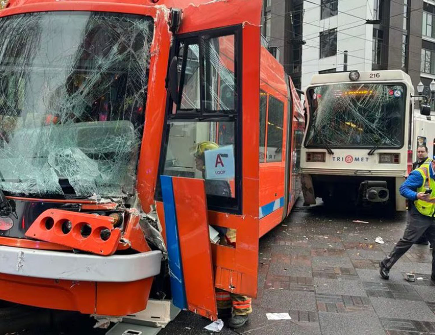 (本報綜述)11约15日上午,一輛TriMet MAX輕軌列車與Street Car有軌電車在波特蘭東北7街和東北Holladay街附近發生碰撞,造成兩人受傷。事故發生在周三上午10:30左右,碰撞導致三節有軌電車脫軌,駕駛員受困,後被救出。兩名傷者被送往醫院,傷勢輕微。相撞的兩輛列車車頭損毀都較為嚴重。事故原因還在進一步調查中。