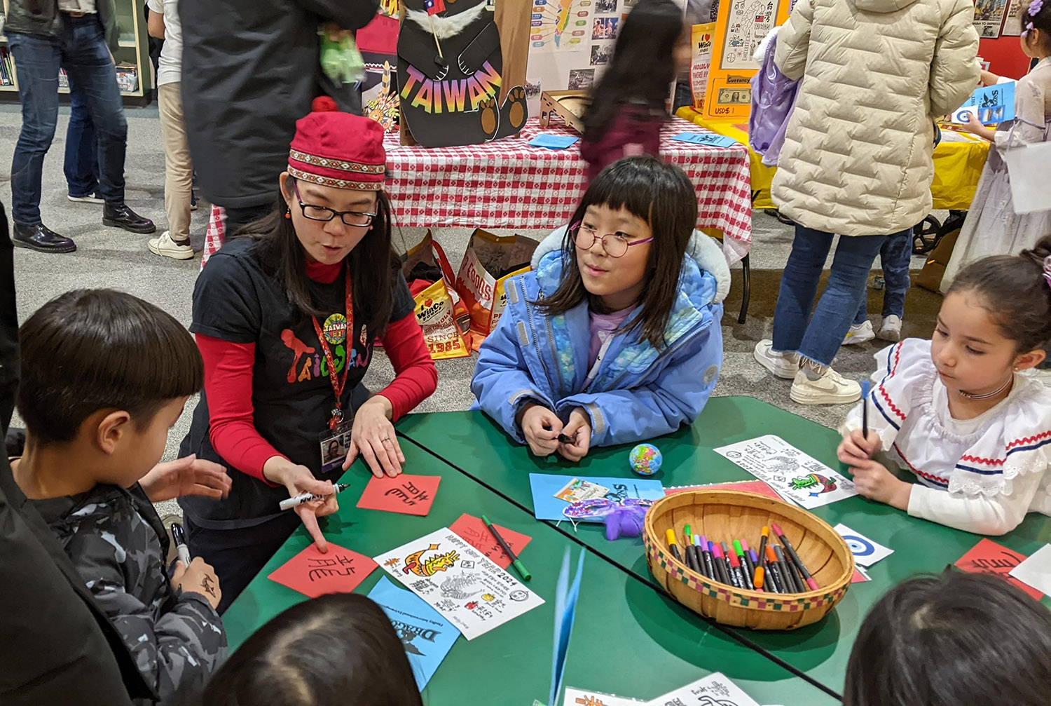 現場的臺灣攤位活動豐富、志工們分工合作,有臺灣知識展示版解說、正體漢字寫斗方春聯活動、彈珠檯遊戲、臺灣特色與春節繪圖紙著色。此次活動正值農曆的小年夜,臺灣攤位做了有獎問答發紅包袋。小朋友想拿紅包的同時也在認真瀏覽資訊展示板。今年最特別的是,臺灣家長吳永健教練組織了臺灣扯鈴隊帶六名小朋友代表臺灣登台表演,他們的表演不僅僅是展示技巧,更是展現了對扯鈴藝術的熱愛與堅持。此次活動,共吸引了400多人參加。感謝支持此次活動的家長、志工、和小朋友們,共同造就了此次活動的圓滿成功。