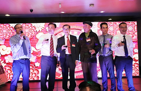 砵崙海宴公所的理事們分別向賓客們祝酒,他們包括林和優主席,副主席黃步嶸,甄德彬,秘書陳龍義,副秘書黃瑞章,出納甄文德,外交陳榮岳,法務陳庭新,文化娛樂李萬祥以及婦聯主席陳曼麗。