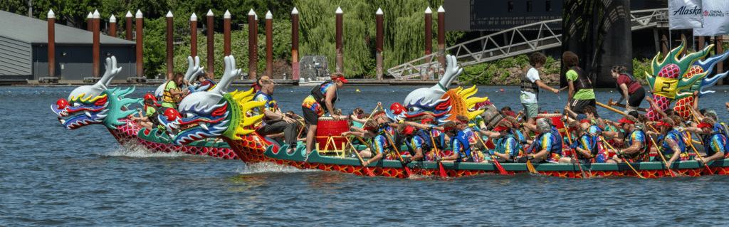 做為波特蘭玫瑰節的重軸戲之一,包括多支「老牌勁旅」與「後起新秀」在內的近六十支龍舟隊參加了2024龍舟競技大賽為期兩天的賽程。