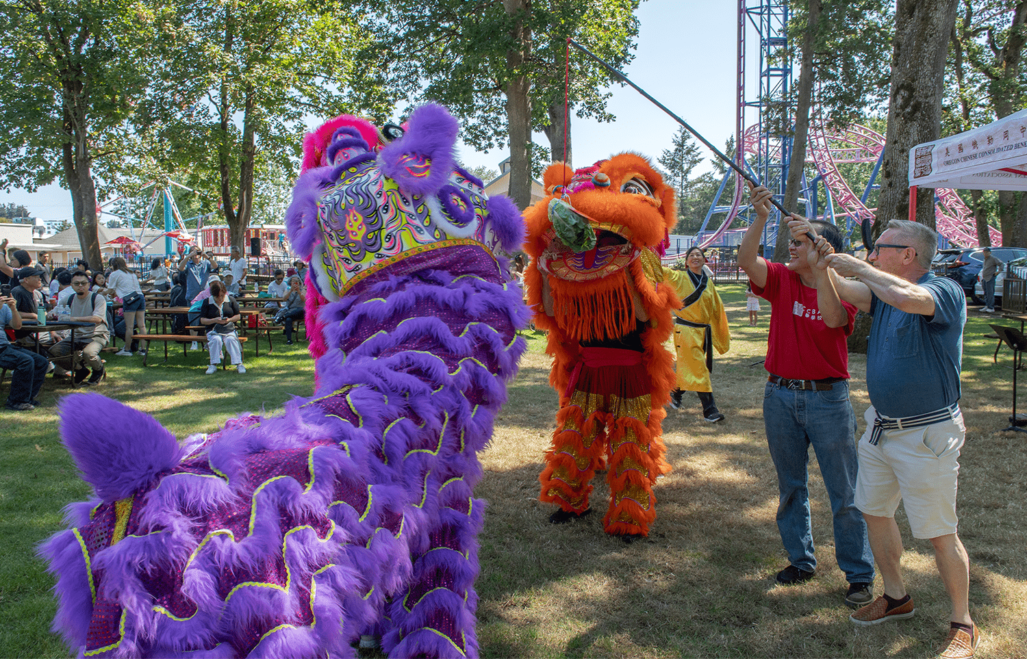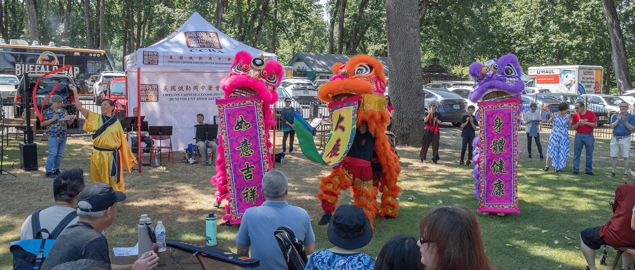 中午12時許,中華會館醒獅隊精采的瑞獅助慶為本年度郊遊會系列活動拉開序幕,波特蘭市議員Dan Ryan,中華會館主席李汝堯一同為醒獅採青。