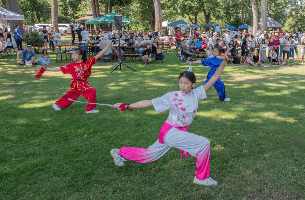 砵崙粵聲社,砵崙中華學校,俄勒岡華人聯盟木蘭大鼓隊,Law & Co功夫展示,以及知名歌手侯婷婷、陳炎宏等表演的豐富多彩的娛樂節目,為郊遊大會增添了歡樂喜慶的氣氛。