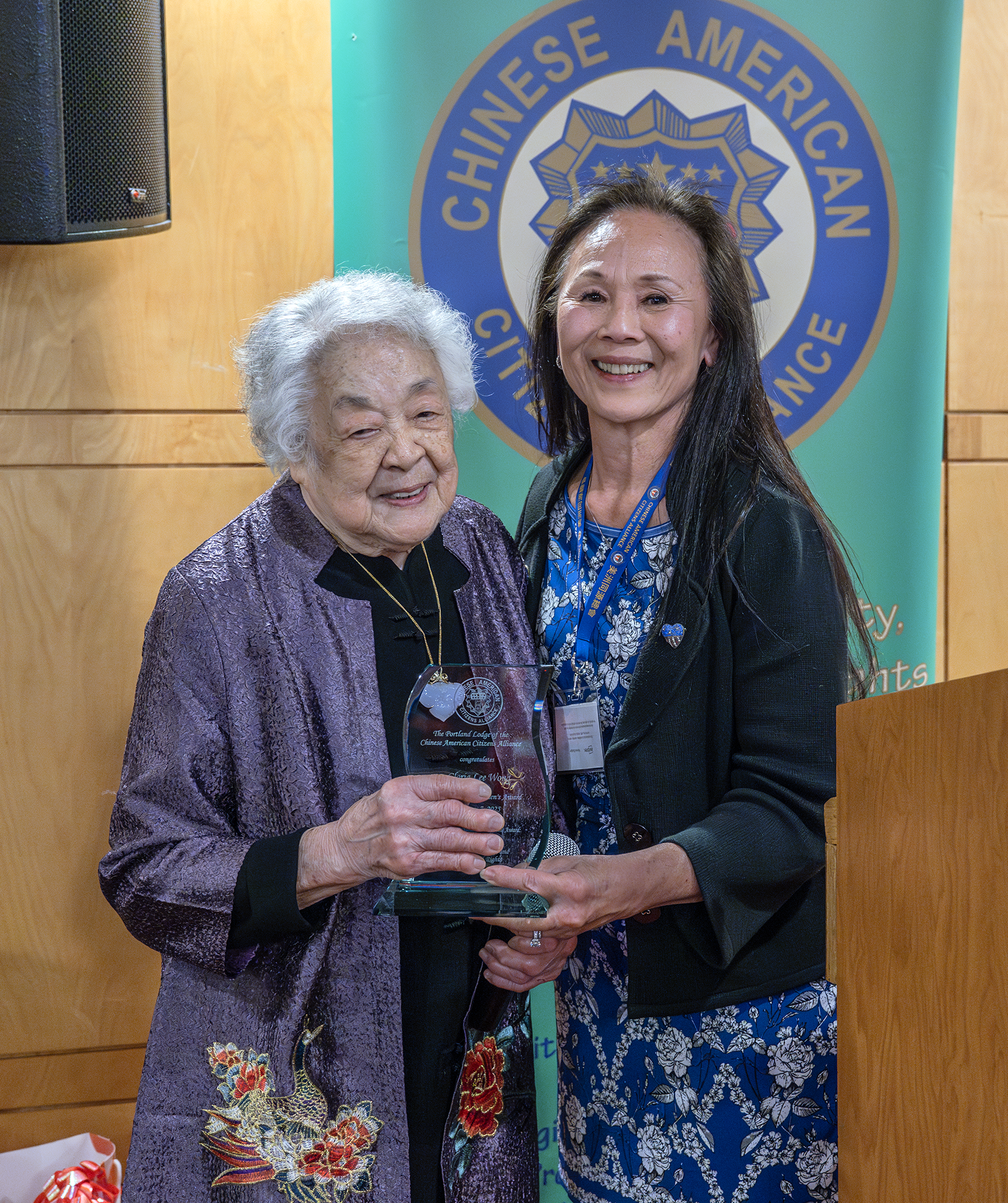 Gloria Wong在發表獲獎感言時表示,波特蘭一代又一代的僑胞一直在為維護自身權益作出不懈地努力。她呼籲華裔民眾要團結一致、關心政治,積極參與社區建設。