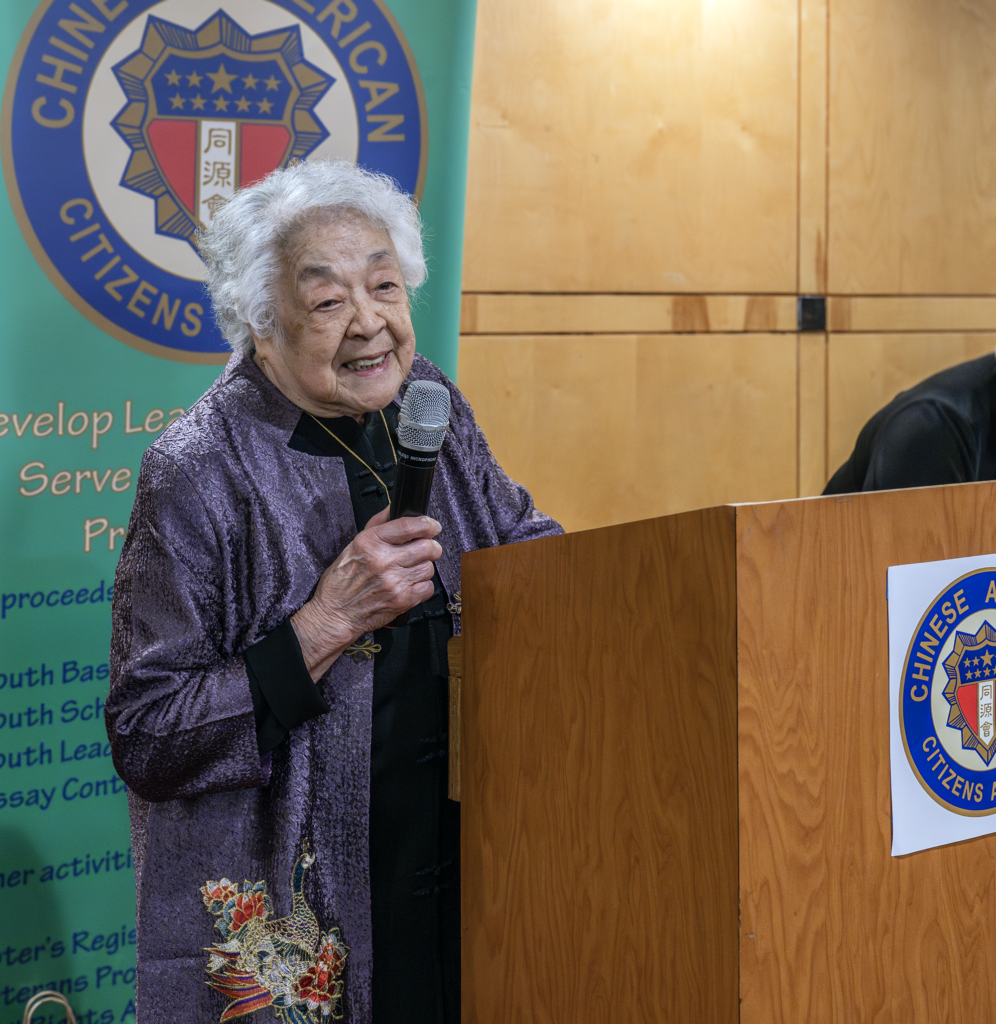 GG Rowe在致賀詞時表示,Gloria Wong六十多年來致力於服務華人社區,她的成就包括了為中文學校和蘭蘇園籌集資金等,「我依然記得,我做為高中畢業生獲得獎學金的那一天」GG Rowe說。