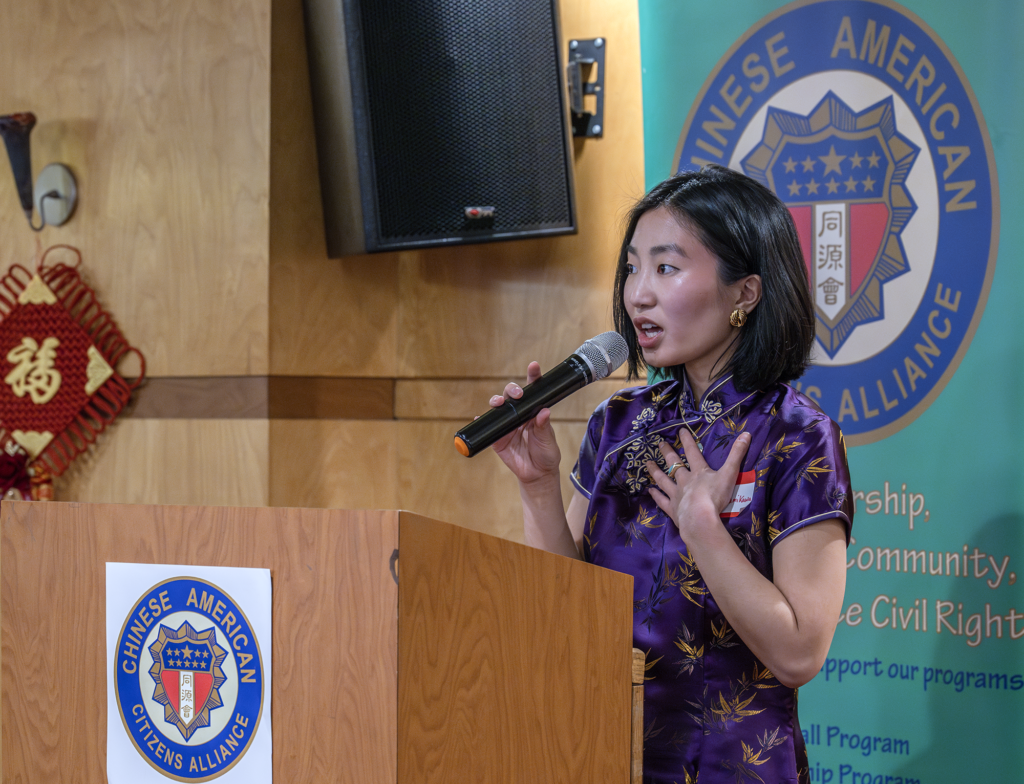 晚宴上,參加同源會『亞太青年領導人培訓』項目的兩位同學Sophia Nguyen 和 Maddie Rejab,分享了她們接受培訓的心得,講述了參加訓練班對影響青年一代學習、成長,及對正確價值觀形成的重要性。據她們介紹,僅在過去的一年中,就有六百多名亞太裔學生參加了該項培訓並由此獲益。