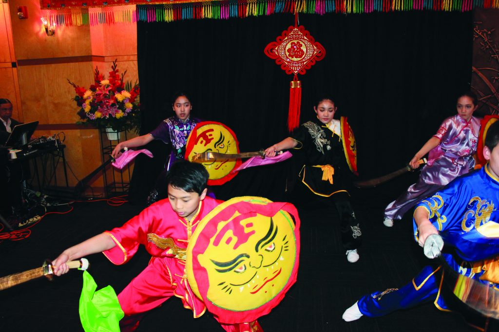 隨後,秉公堂八位女士為大家獻唱“年年歡樂”,“祝福您”兩首滿節日氣氛賀年曲。整晚高潮環節,由美國武術中心(US Wushu Center)的數位小武術家為大家演出了少林拳、雙鞭、通臂拳、九節鞭、峨眉刺、醉拳、雙刀及對打等精彩武術表演,令人嘆為觀止。接著由中國聯誼會健身舞蹈團5位身穿傳統旗袍的女士為大家演出一“夢裡水鄉”的優美音樂時裝秀。