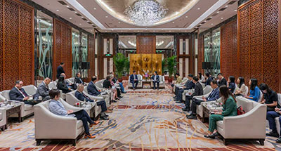 當天上午,深圳市人大常委會主任戴運龍等市府官員與代表團成員一行舉行座談,圍繞深化兩地多領域合作展開交流。