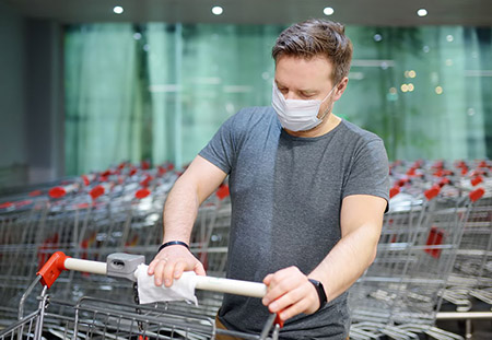 3)自帶或使用超市供應的消毒紙巾來擦拭超市推車或購物籃的扶手;