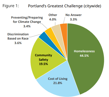 本次調查由波特蘭市預算辦公室與波特蘭州立大學社會服務研究所合作進行,於2023年6月3日至10月28日之間收集了約4,200名居民的回應。受訪者被問及對城市在可負擔性、市政服務、文化藝術等方面的滿意度。