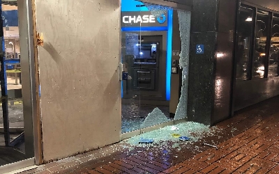 這班暴徒向市中心多家商舖進行破壞並偷竊,包括銀行、珠寶店、咖啡店、酒舖等。