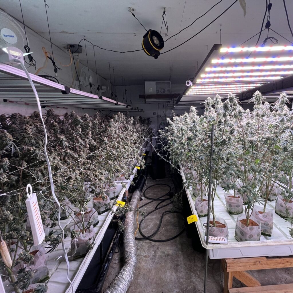 執法人員在現場發現多棟附屬建築內種植大量仍在生長中的大麻植物,總數超過3500株,同時查獲與大麻加工相關設備。此外,警方還扣押了超過10萬美元現金、三把槍械,以及兩輛涉嫌用於運輸大麻的車輛。