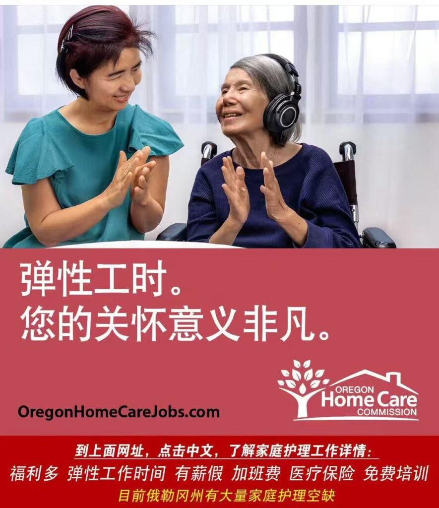有興趣者可上網至OregonHomeCareJobs.com,點選中文頁面了解更多資訊。